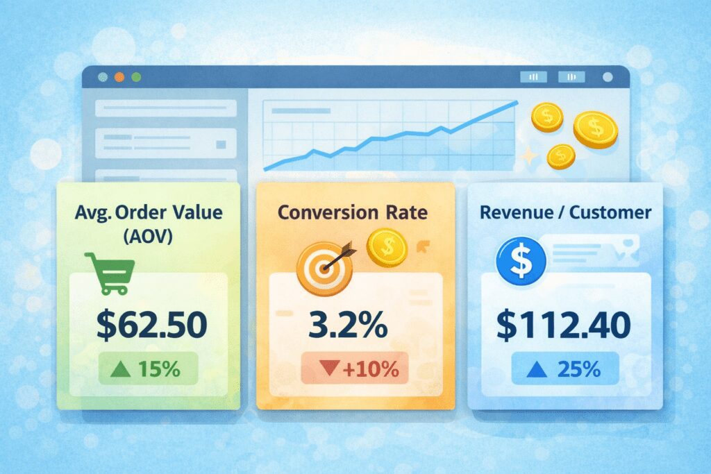Even small increases in average order value can massively impact revenue without needing extra traffic. For example, if your average order value is $50, a 20% increase pushes it to $60, without any additional ad spend. That’s pure profit growth.